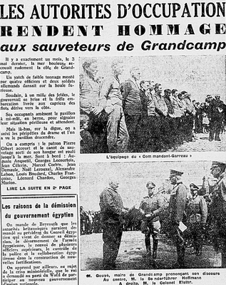 Dans l'après-midi du 6 juin 1941, les grandcopais s'amassent sur le Perré. Un carré de soldats de la Wehrmacht, accompagné de quelques hommes de la Kriegsmarine, s'organisent de chaque côté de la station de la Société Nationale de Sauvetage (ancêtre de la SNSM) sous l’œil coquin de l'équipage du canot "Commandant GARREAU". Si la scène pourrait faire croire à une énième réquisition, il s'agit en fait d'une mise à l'honneur de nos marins, en écho au sauvetage qui eut lieu le 3 mai dernier. 4 officiers allemands et 2 soldats se trouvaient alors en fâcheuse posture sur leur bateau après avoir cassé le gouvernail.